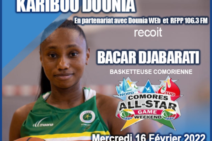 La joueuse de Basket : BACAR DJABARATI viendra nous parler de son parcours, le week end de Basket pour la promotion du basket comorien et comorienne et du match d'exhibition de baskets : Les meilleurs joueuses du sud face aux meilleurs joueuses du nord