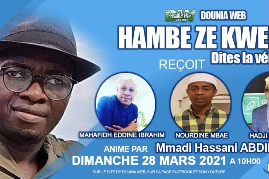 ce dimanche 28 mars 28/03/21 à 10h00 sur Dounia Web et ces médias partenaires Brtv, Radio Ngazi