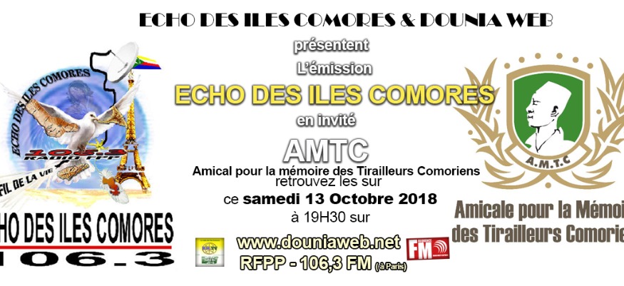 Retrouvez l'émissions Echo des iles Comores avec Mr Abdou Rahamane et Abou. C'est une émission d'animation musicale et d'information sur les Comores. Elle est depuis plus de 20 ans sur les ondes RFPP. Une émission diffusée en direct par la Radio Fréquence Paris Plurielle 106.3 FM et sur www.douniaweb.net.